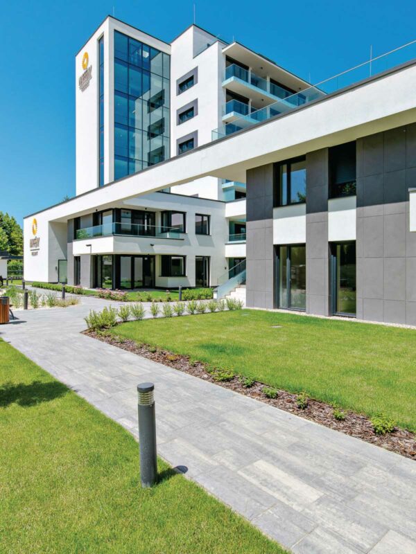 A SEMPRE GRANDO térkő rendszer elegáns, szép, egyenes vonalú letisztult felülete udvarok, parkok, terek legjobb díszburkolata. 30 cm-es raszterméretével, a háromfajta lap 30, 45 és 60 cm hosszúságával kitűnő választás minden felhasználó számára. A letisztult kombinált formarendszerhez árnyalt színek párosúlnak. A burkolat felületi védelmét Clean & Color Protect (CP+) kezelőanyag látja el. A CP+ védi a burkolat felülét az időjárás viszontagságaitól és a szennyeződésektől könnyen tisztíthatóvá teszi.